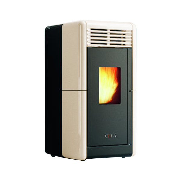 Stufa a pellet ventilata canalizzabile, colore Avorio. Top e frontalino in maiolica.Rivestimento in acciaio.Gestione aria con manopola posteriore.Porta in ghisa con cristallo piano ceramico serigrafato.Nuova camera di combustione al alto rendimento.Struttura in acciaio e ghisa.Telecomando di nuova generazione per operazioni a distanza.Predisposizione per presa aria di combustione esterna.Pulizia automatica del sistema braciere/porta braciere in ghisa.Cassetto cenere e maniglia estraibili. Dati Tecnici:- Potenza Introdotta (Pi) 10,21 kW. - ridotta Pi.r.) 2,7 kW.- Potenza Termica Nominale (Pnom) 9,10 kW. - ridotta (Prid) 2,58 kW.- Consumo pellet: (Pnom) 2,15 kg/h. - (Prid) 0,57 kg/h.- Emissione CO 13%O2: (Pnom) 0,01% - (Prid) 0,02%.- Emissioni polveri (15a-B-VG): (Pnom) 15,6 - 18,10 mg/m3.- Temperatura fumi: (Pnom) 182,2°C - (Prid) 80,2°C.- Rendimento termico: (Pnom) 89,5% - (Prid) 95,66%.- Tiraggio canna fumaria: 10 - 14 Pa.- Assorbimento elettrico: 120W - start 420W.- Diametro tubo scarico fumi 80 mm.- Diametro presa aria 50 mm.- Capacità serbatoio pellet 18 kg.- Volume riscaldabile 265 m3.- Peso netto 130 Kg.- Dimensioni (HxLxP) 1075 x 570 x 534. mm.